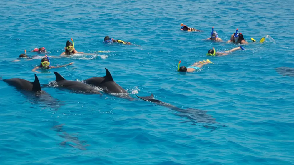 Sobald das Boot ablegt, öffnet sich die weite Fläche des Roten Meeres. Die Fahrt geht zu Orten, an denen Delfine oft unterwegs sind. Die ersten Bewegungen im Wasser erscheinen schnell. Manchmal tauchen die Tiere nah am Boot auf. Diese Momente sind still und eindrucksvoll. Die Nähe fühlt sich natürlich und frei an.